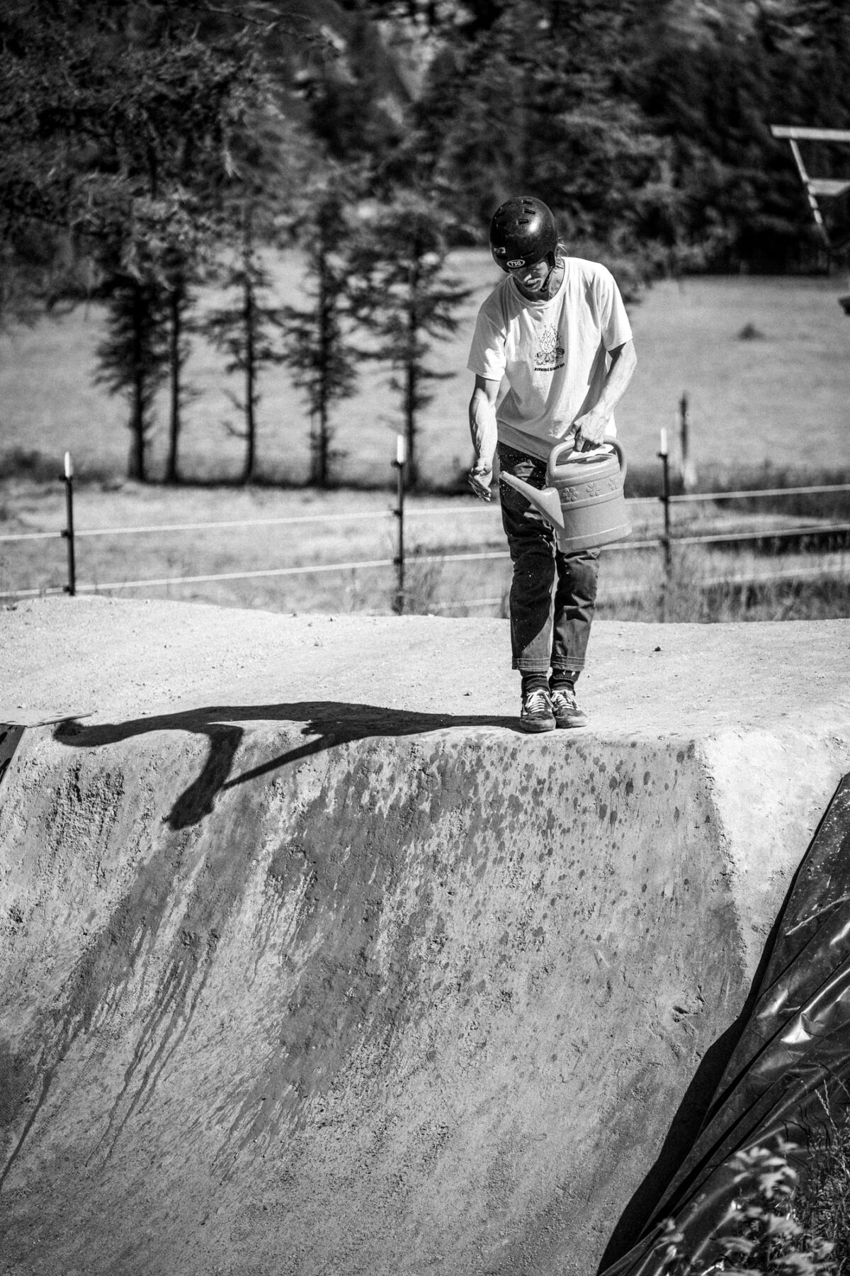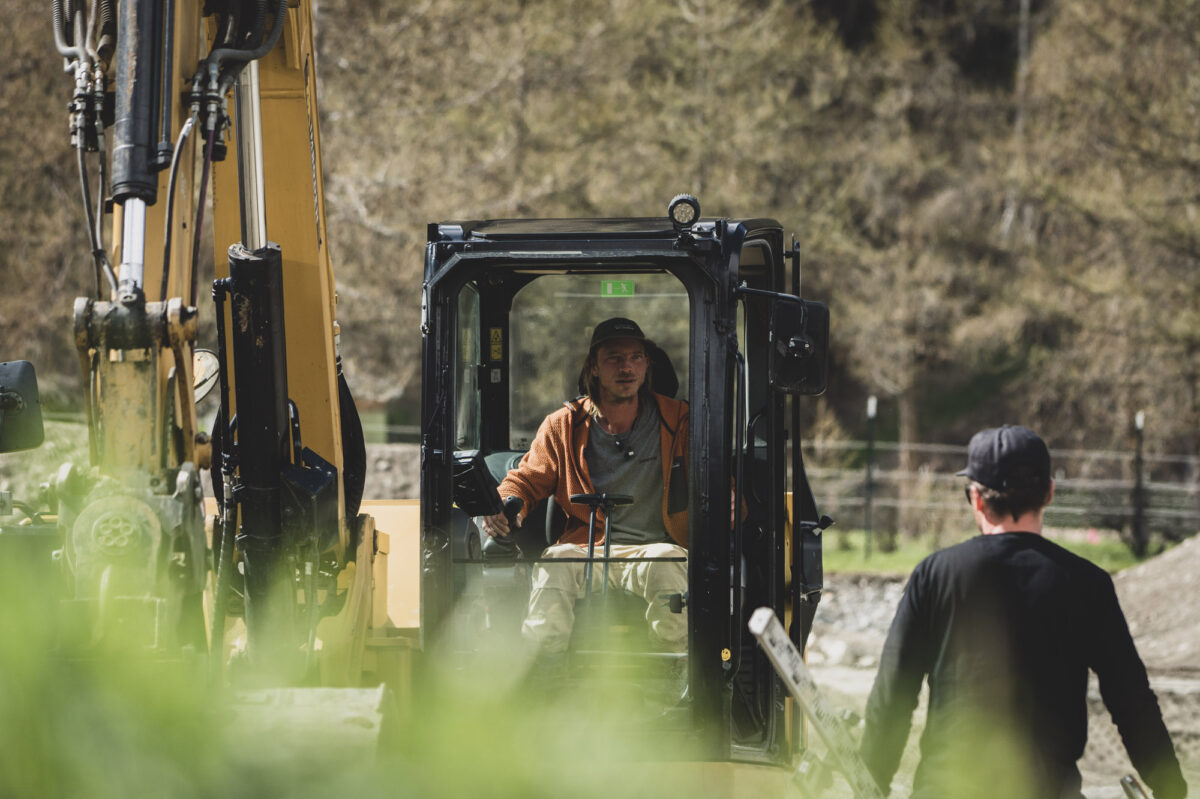 Der einst flache Platz wurde in einer ersten Bauetappe (Herbst 2022) zuerst grob neu modeliert. Zwei grössere Hügel sowie die Dirtjumps wurden im Gelände neu aufgeschüttet. In der zweiten Bauetappe (Frühling / Sommer 2023) wurden die drei Zonen in die vorgebaute Geländemodulation, welche sich über den Winter setzen konnte, eingebaut. Der eine Hügel dient als Anlauf für die Jumps sowie für die Drop-Batterie: vom anderen Hügel starten die Downhill Switchbacks und der Rock Garden. Insbesondere die Aufschüttungen verleihen der Fläche eine dreidimensionale Komponente. Einerseits entsteht so Anlaufenergie für Sprünge und Drops, andererseits trägt die Geländemodulation wesentlich zum räumlichen Gesamterlebnis bei. Ergänzt durch die Bepflanzung mit heimischen und standortgerechten Saatgut, Bäumen und Sträuchern fügt sich die ehemalige Brache so passend wieder in das Gebiet rund um den Schalisee ein.